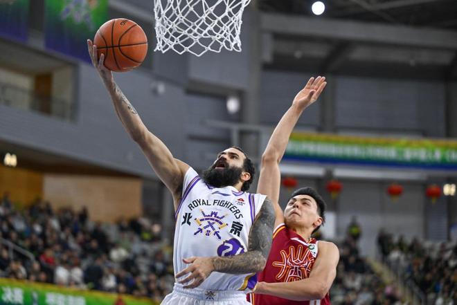 2月7日,北京控股队球员里勒(左)在比赛中上篮。新华社记者 贝赫 摄