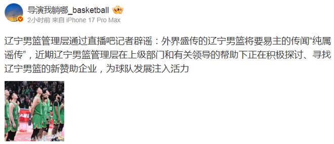 辟谣!工作人员明确否认“辽篮易主” 正寻找新赞助企业-24直播网